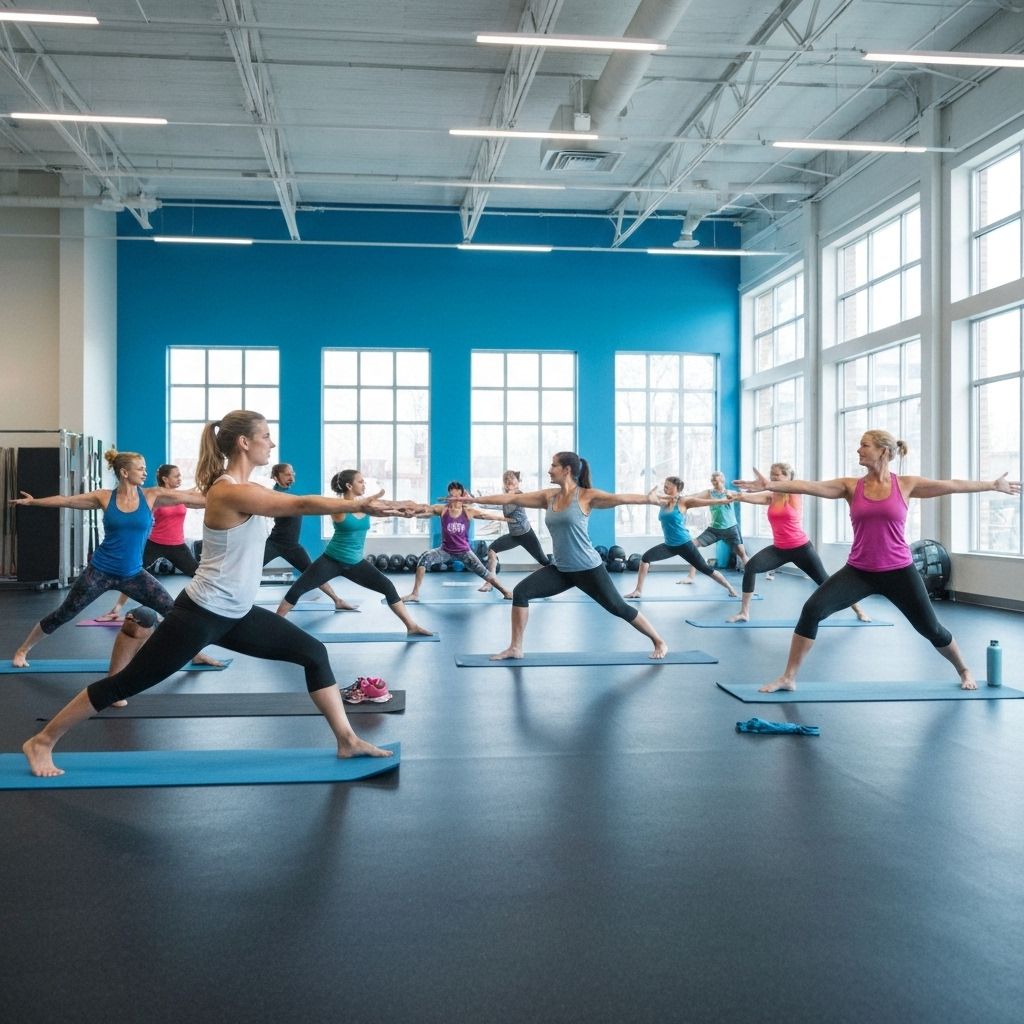 Dynamic group fitness classes including HIIT, spin, yoga, and more